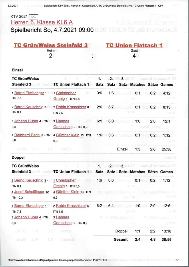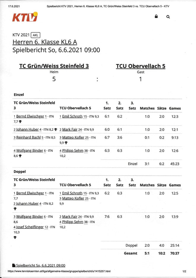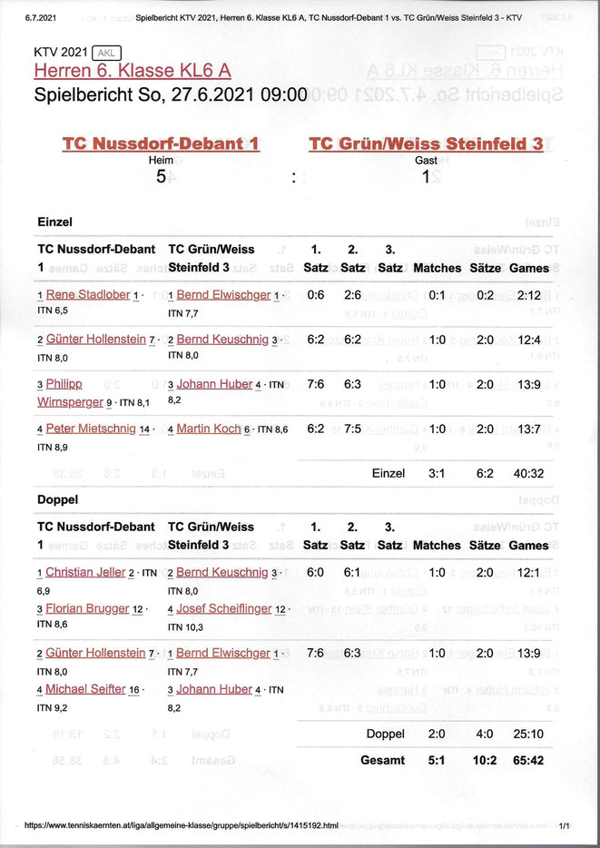 Nussdorf/Debant I - TC Steinfeld III 5:1